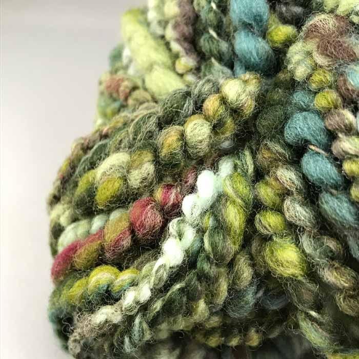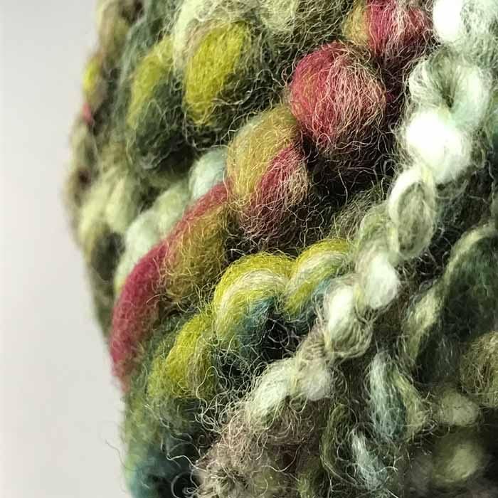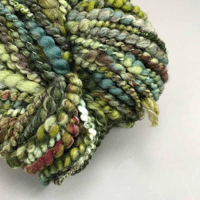 少し強めに撚りがきいた、弾力のあるアートヤーンです。