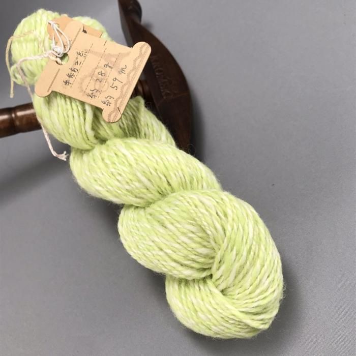 若干細めの杢糸です。 少々硬めの手紡ぎ毛糸ですので、夏糸としてもお使いいただけるのではないかと思います。バックやポーチの一部分に また、ドイリー など 小物の編み物に向いていると思います。