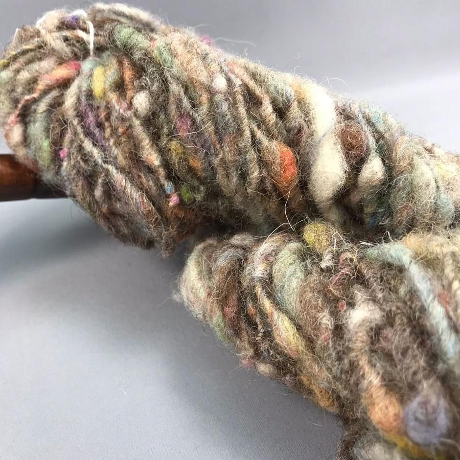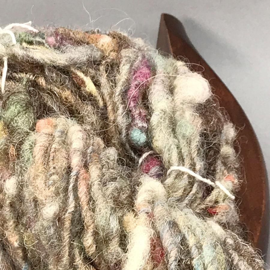様々な色、素材をミックスした羊毛を使用して紡いでいます。