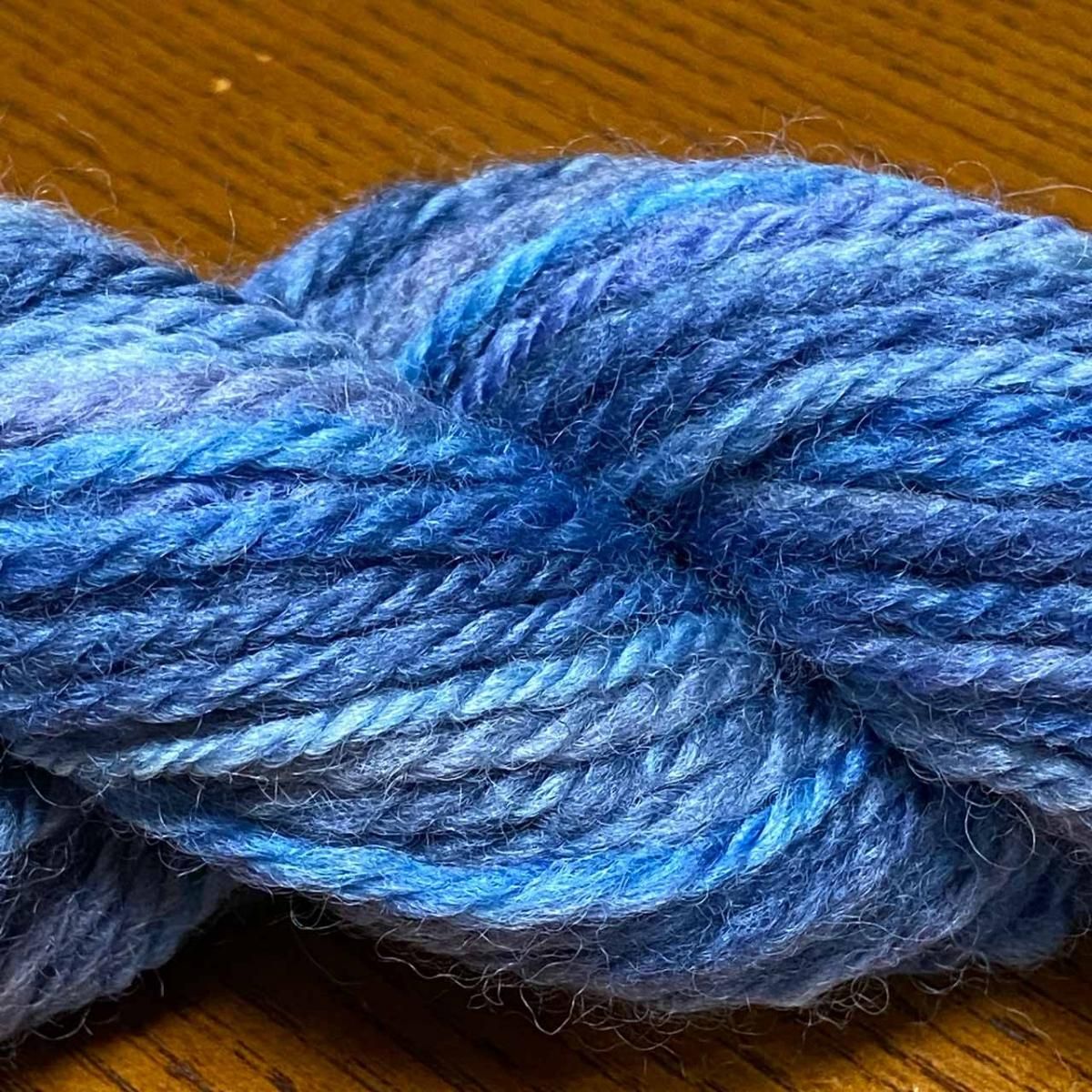 ブルーの段染めコリデール・並太毛糸 Poko44)