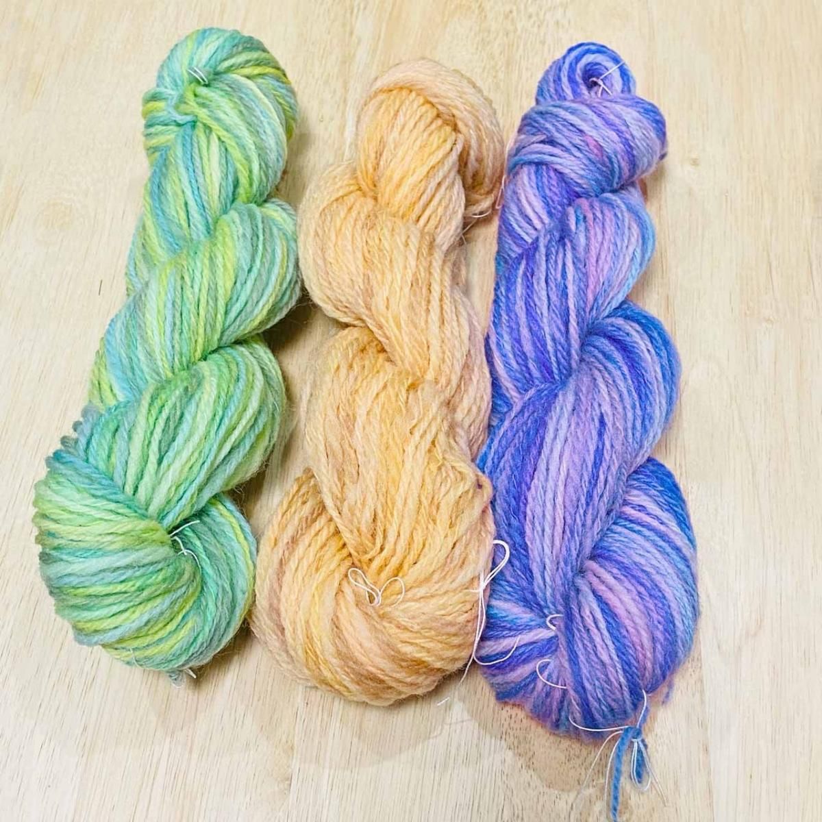 太さ : 並太から極太程度(細いとこあります。太いとこあります。手紡ぎ糸の景色です)